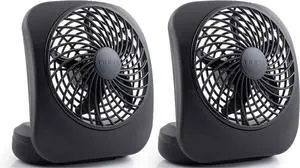 Treva 5 Inch Battery Powered Fan Portable Desk Fan 2 Cooling Speeds with Compact Folding & Tilt Design Cubicle Accessories Small Portable 2 Pack (Black)