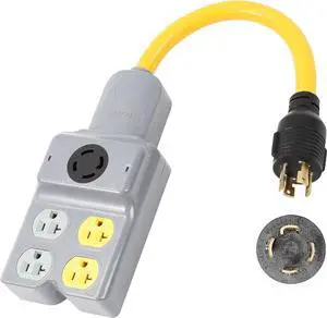 NEMA L14-30P to 4 Port 5-15R 5-20R L14-30R 1.5 Feet 5 Outlet 120/240V 30 Amp 4 Prong Twist Lock Male Plug to Female Receptacle Home Appliance RV Generator Power Cord Adapter