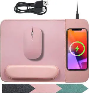 VIVIYA 15W Wireless Charging Mouse Pad with Detachable Wrist Support, Fast QI Phone Charger Mouse Mat for iPhone 14/13/12/11/X/8 and Samsung Multiple Mobile Devices (Pink)