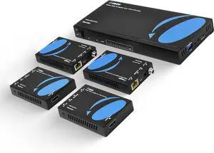 OREI 4K HDMI Over Ethernet 1x4, One Input to Four Outputs Over Ethernet Up to 115 feet (Mirrored), 4K@60Hz 4:4:4, Loop Output for a Display at Source & Low Latency Transmission (UHD14-EX115-K)