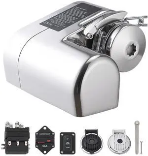 Horizontal Fishing Windlass, 12V DC 600W, Windlass Anchor Systems Fit for 1/4-Inch Chain or 9/16 & 5/8 Inch Nylon Rope, Max Pull 573 lbs, 316 Stainless Steel Construction, for Boats 23-29.5 ft