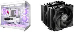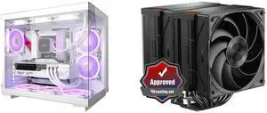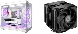 PCCOOLER CPS C3 T500 ARGB PC Case, Dual-Chamber Mid-Tower ATX Case, Desktop Computer Case w/ 6 ARGB Fans Pre-installed w/ Fan Hub, Column-Free Design, Tempered Glass, USB 3.1 Gen 2 Type-C, White and PCCOOLER CPS RT620Pro Dual Tower CPU Air Cooler, 6 Heat Pipes, 265W TDP, 153mm Tall, 120mm PWM Slient Fans, Tower Reinforced Structure, for Intel LGA1851/1700/1200/115X & AMD AM5/AM4, Black