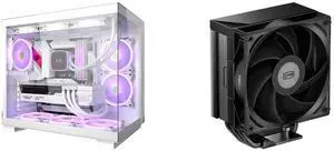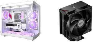 PCCOOLER CPS C3 T500 ARGB PC Case, Dual-Chamber Mid-Tower ATX Case, Desktop Computer Case w/ 6 ARGB Fans Pre-installed w/ Fan Hub, Column-Free Design, Tempered Glass, USB 3.1 Gen 2 Type-C, White and PCCOOLER CPS RZ620 Dual Tower CPU Air Cooler, 6 Heat Pipes, 275W TDP, Aluminum Top Cover, 157.5mm Tall, 120mm PWM Silent Fans w/ 3 Modes, for Intel LGA 1851/1700/1200/115X & AMD AM5/AM4, Black
