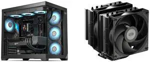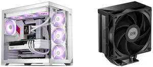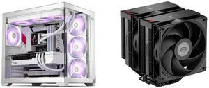 PCCOOLER CPS C3 T700 PC Case, Dual-Chamber Mid-Tower ATX Case, High-Airflow Computer Case, BTF Motherboard Supports, Sturdy Tempered Glass Front & Side Panels, Black (Fans Not Included) and PCCOOLER CPS RT620Pro Dual Tower CPU Air Cooler, 6 Heat Pipes, 265W TDP, 153mm Tall, 120mm PWM Slient Fans, Tower Reinforced Structure, for Intel LGA1851/1700/1200/115X & AMD AM5/AM4, Black
