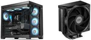 PCCOOLER CPS C3 T700 PC Case, Dual-Chamber Mid-Tower ATX Case, High-Airflow Computer Case, BTF Motherboard Supports, Sturdy Tempered Glass Front & Side Panels, Black (Fans Not Included) and PCCOOLER CPS RT500 TC CPU Air Cooler, 5 Direct Contact Heat Pipes, 245W TDP, 152mm Tall, 120mm PWM Slient Fan, for Intel LGA1851/1700/1200/115X & AMD AM5/AM4, Black