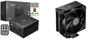 PCCOOLER CPS YS1000 Fully Modular Power Supply, 80 PLUS Gold 1000W PSU, 12V-2x6 Cable, ATX 3.1 & PCIe 5.1 Ready, 105°C Rated Japanese Capacitors, ECO Mode, 135mm FDB Fan, 12 Years Warranty and PCCOOLER CPS RT500 TC CPU Air Cooler, 5 Direct Contact Heat Pipes, 245W TDP, 152mm Tall, 120mm PWM Slient Fan, for Intel LGA1851/1700/1200/115X & AMD AM5/AM4, Black