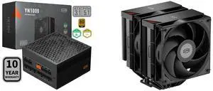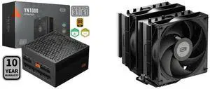 PCCOOLER CPS YN1000 Fully Modular Power Supply, 80 PLUS Gold 1000W PSU, 12V-2x6 Cable, ATX 3.1 & PCIe 5.1 Ready, 105°C Rated Japanese Capacitors, ECO Mode, 135mm FDB Fan, 10 Years Warranty and PCCOOLER CPS RT620Pro Dual Tower CPU Air Cooler, 6 Heat Pipes, 265W TDP, 153mm Tall, 120mm PWM Slient Fans, Tower Reinforced Structure, for Intel LGA1851/1700/1200/115X & AMD AM5/AM4, Black