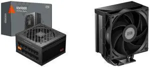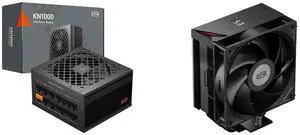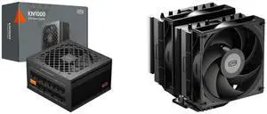 PCCOOLER CPS KN1000 Fully Modular Power Supply, 80 PLUS Gold 1000W PSU, Native 12V-2x6 Connector, ATX 3.1 & PCIe 5.1 Ready, Dual CPU Power Cables, 105°C Rated Japanese Capacitors, P3-KN1000-G1F and PCCOOLER CPS RZ620 Dual Tower CPU Air Cooler, 6 Heat Pipes, 275W TDP, Aluminum Top Cover, 157.5mm Tall, 120mm PWM Silent Fans w/ 3 Modes, for Intel LGA 1851/1700/1200/115X & AMD AM5/AM4, Black