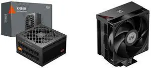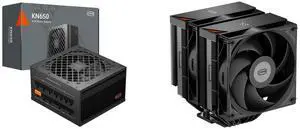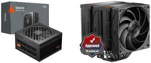 PCCOOLER CPS KN650 Fully Modular Power Supply, 80 PLUS Gold 650W PSU, Native 12V-2x6 Connector, ATX 3.1 & PCIe 5.1 Ready, Dual CPU Power Cables, 105°C Rated Japanese Capacitors, P3-KN650-G1F and PCCOOLER CPS RT620Pro Dual Tower CPU Air Cooler, 6 Heat Pipes, 265W TDP, 153mm Tall, 120mm PWM Slient Fans, Tower Reinforced Structure, for Intel LGA1851/1700/1200/115X & AMD AM5/AM4, Black