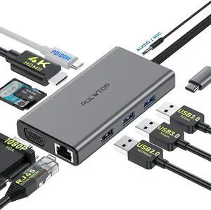 Laptop Docking Station 10 in 1 USB C Hub Multiport Adapter, 1*HDMI 4K 30Hz,VGA, Ethernet, USB 3.0, USB A 2.0, TF/SD, Audio, MacBook Dongle for MacBook Dell Hp Lenovo Laptop Type C Devices