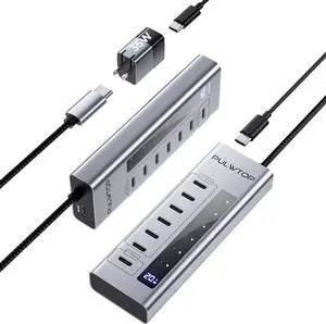 PULWTOP Powered USB C Hub, 7 in 1 USB C Hub Support Data 10Gbps & Charging(Not Support Video), USB C Powered Hub 10Gbps Ports for iMac, MacBook Pro/Air, iPad, XPS, USB Hub with 35W PD Power Adapter