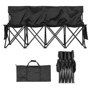 VEVOR Portable Folding Bench, 4 Seat Foldable Soccer Bench with Side Pockets and Carrying Bag, Lightweight Sideline Seating with Back Rest for Football, Baseball, Camping, Outdoor Events, Black