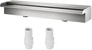 Pool Fountain Stainless Steel Pool Waterfall 23.6\" x 4.5\" x 3.1\"(W x D x H) Waterfall Spillway with Pipe Connector Rectangular Garden Outdoor, Silver