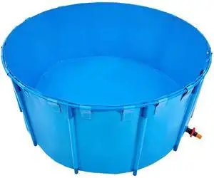 Canvas Fish Pond, 1320 Gal Capacity Above Ground Fish Pond, Foldable PVC Koi Tank, Round Goldfish Tank with Stable Frame and Drain Valve, for Aquaculture, Koi Breeding, and Irrigation (Blue)