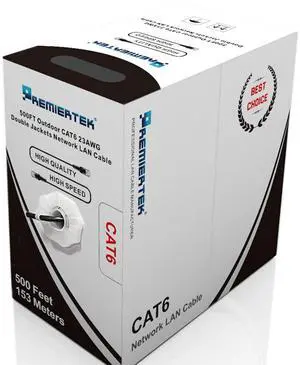 Premiertek Outdoor F/UTP 23AWG CCA CAT6 500FT Black