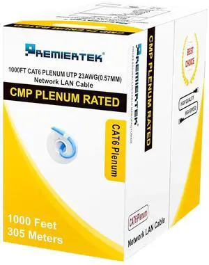 Premiertek 1000Ft Cat6 23AWG UTP Solid 4-Pairs Network Ethernet LAN Cable Bulk White (CAT6-CCA-1KFT-W)