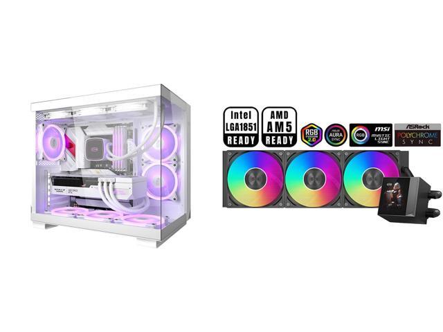 PCCOOLER CPS C3 T500 ARGB PC Case, Dual-Chamber Mid-Tower ATX Case, Desktop Computer Case w/ 6 ARGB Fans Pre-installed w/ Fan Hub, Column-Free Design, Tempered Glass, USB 3.1 Gen 2 Type-C, White and 1 x PCCOOLER CPS DC360 Pro ARGB Display AIO CPU Liquid Cooler, 360mm Radiator, 310W TDP, Customizable 2.4" IPS LCD Display, Ceramic Bearing, for Intel LGA 1851/1700/1200/115X & AMD AM5/AM4, Black
