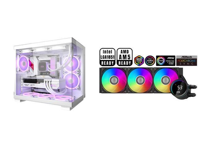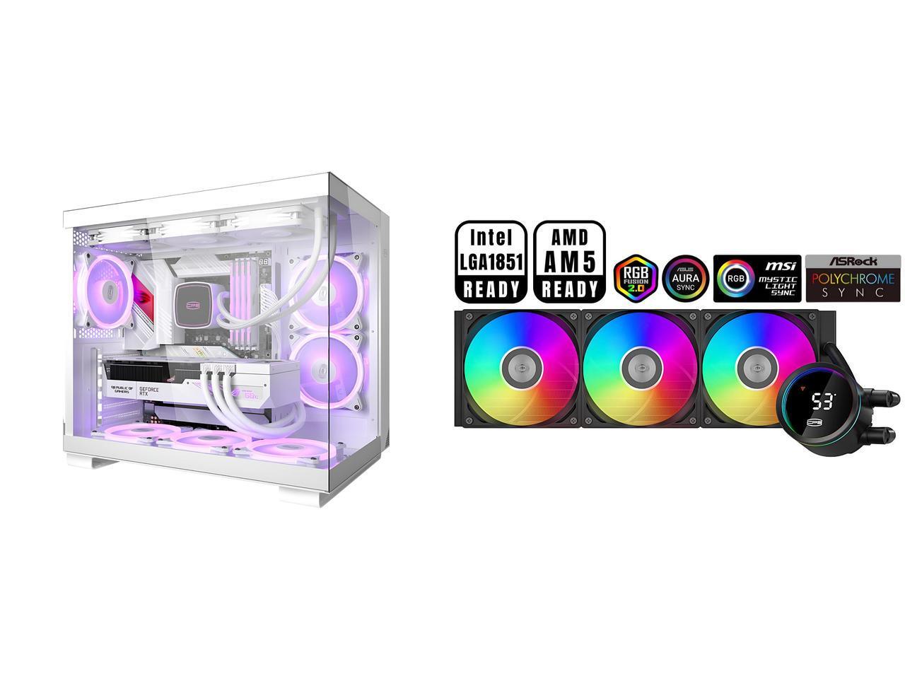 PCCOOLER CPS C3 T500 ARGB PC Case, Dual-Chamber Mid-Tower ATX Case, Desktop Computer Case w/ 6 ARGB Fans Pre-installed w/ Fan Hub, Column-Free Design, Tempered Glass, USB 3.1 Gen 2 Type-C, White and 1 x PCCOOLER CPS DA360 Pro ARGB Digital AIO CPU Liquid Cooler, 360mm Radiator, 300W TDP, 270° Rotatable Digital Display, Infinity Halo ARGB Effect, for Intel LGA 1851/1700/1200/115X & AMD AM5/AM4, Black