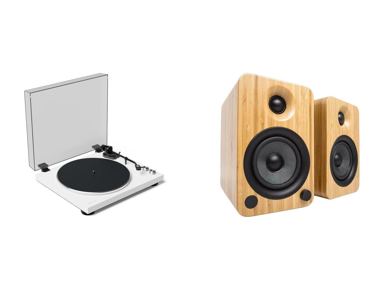 Kanto OBI3 Belt Drive Turntable w/Bluetooth 5.3 & Preamp | Pitch Control | AT3600L Cartridge | Aluminum Platter | Matte White and 1 x Kanto YU4 Powered Bookshelf Speakers with Built-In Bluetooth - Pair (Bamboo)
