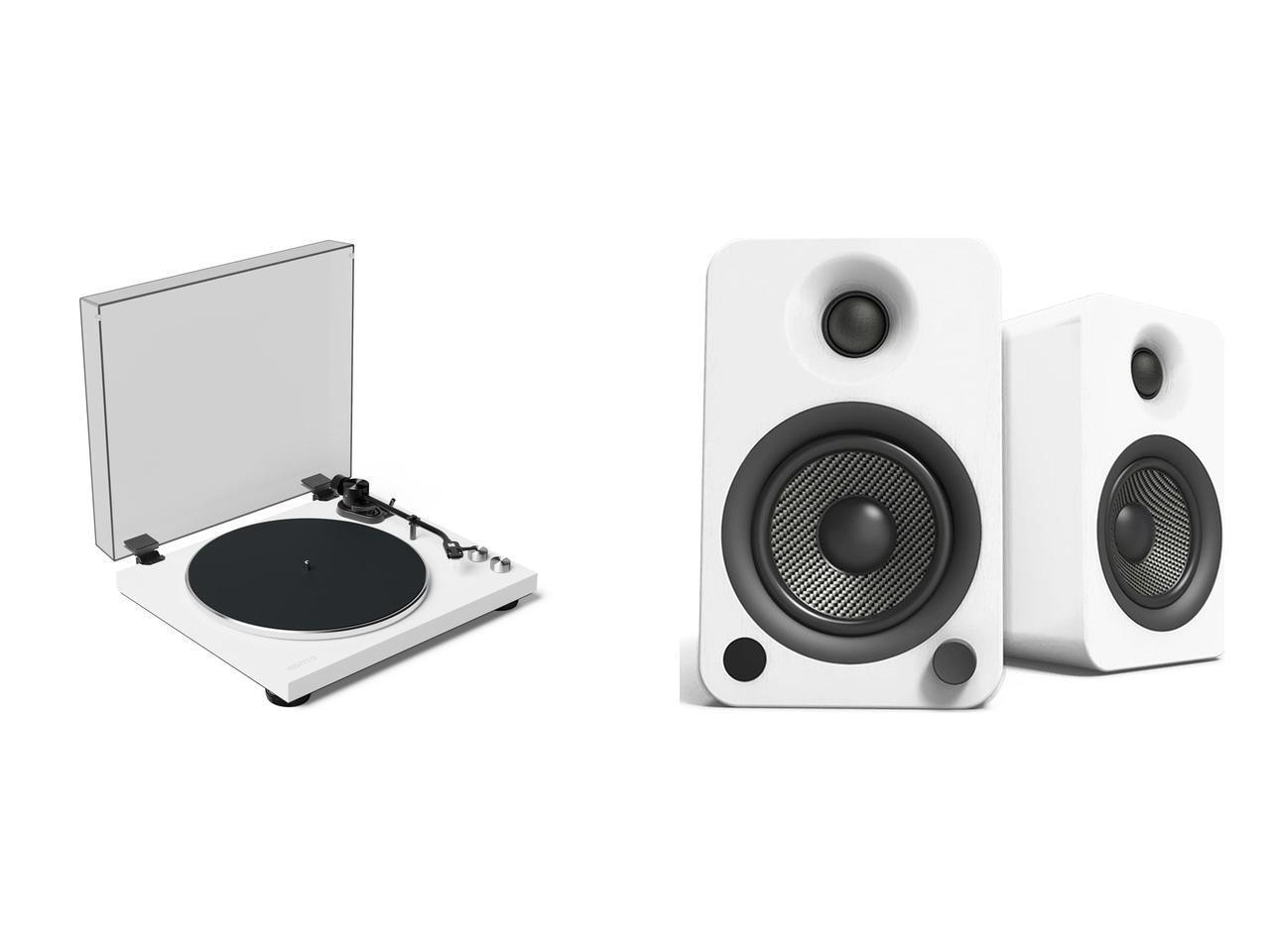 Kanto OBI3 Belt Drive Turntable w/Bluetooth 5.3 & Preamp | Pitch Control | AT3600L Cartridge | Aluminum Platter | Matte White and 1 x Kanto YU4 Powered Bookshelf Speakers with Built-In Bluetooth - Pair (Matte White)