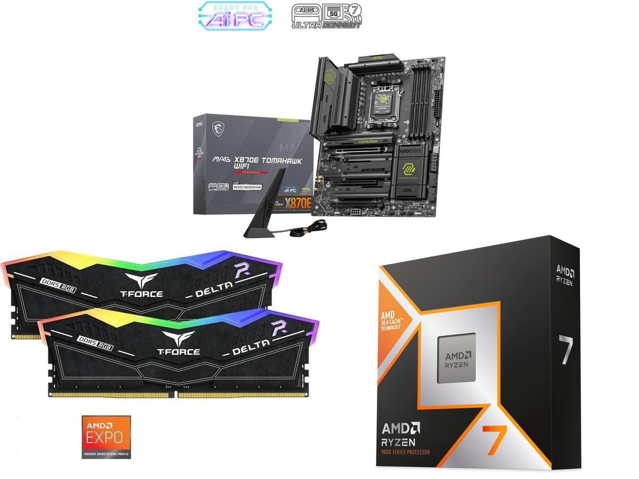 The MAG X870E TOMAHAWK WIFI motherboard supports AMD Ryzen 9000 / 8000 / 7000 Series processors.