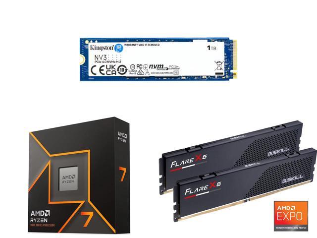 Kingston NV3 M.2 2280 1TB PCIe 4.0 x4 NVMe Internal Solid State Drive (SSD) SNV3S/1000G Up to 6000 MB/s AMD Ryzen 7 9700X - Ryzen 7 9000 Series Granite Ridge (Zen 5) 8-Core 3.8 GHz - Socket AM5 65W - Radeon Graphics Processor - 100-1000014