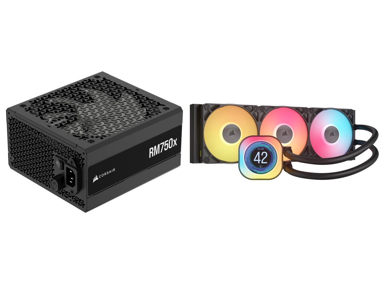 CORSAIR RMx Series RM750x ATX Power Supply - Fully Modular - ATX 3.1 - PCIe 5.1 - Cybenetics Gold - Low-Noise - Japanese Capacitors - 750 Watts CORSAIR iCUE LINK TITAN 360 RX LCD Liquid CPU Cooler – RX120 RGB Fans – Fits Intel® LGA 1851/17