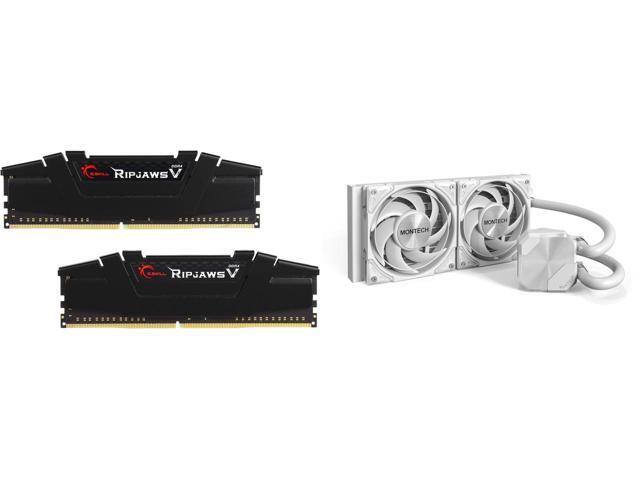 G.SKILL Ripjaws V Series 32GB (2 x 16GB) 288-Pin PC RAM DDR4 3600 (PC4 28800) Desktop Memory Model F4-3600C18D-32GVK MONTECH HyperFlow Silent 240 White – Ultra-Quiet AIO Liquid CPU Cooler, 3100RPM Pump, Triple Silent Fans, High-Efficiency R