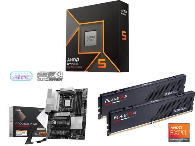AMD Ryzen 5 9600X - Ryzen 5 9000 Series Granite Ridge (Zen 5) 6-Core 3.9 GHz - Socket AM5 65W - Radeon Graphics Processor - 100-100001405WOF MSI PRO X870-P WIFI ATX AM5 Motherboard, USB 4.0, 4x SATA 6Gb/s, AMD Wi-Fi 7,USB 4.0 G.SKILL Flare