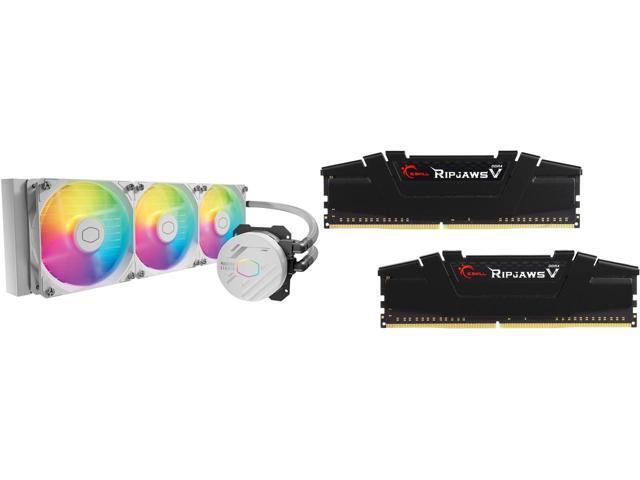 Cooler Master 360L Core White Close-Loop AIO Liquid Cooler, Ryzen 9|intel 9 Gen S Dual Chamber Pump, Quiet 120mm PWM Fan, Customize aRGB Lighting, 360 Radiator, AMD AM5|4, Intel LGA 1851|1700 Platform G.SKILL Ripjaws V Series 32GB (2 x 16GB