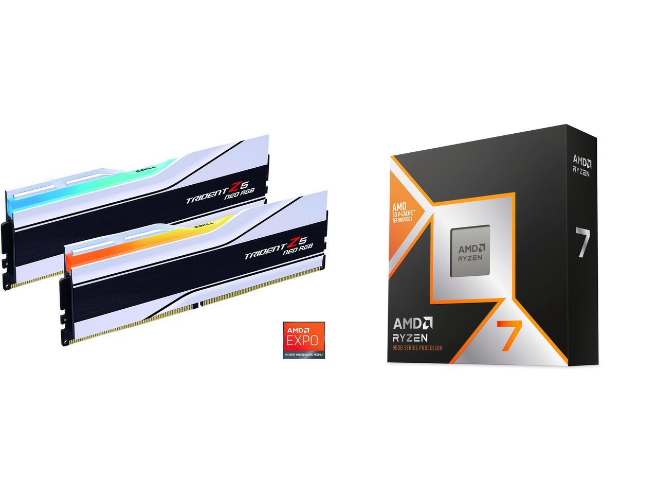 G.SKILL Trident Z5 Neo RGB Series 32GB (2 x 16GB) 288-Pin PC RAM DDR5 6400 (PC5 51200) Desktop Memory Model F5-6400J3039G16GX2-TZ5NRW AMD Ryzen 7 9800X3D - Ryzen 7 9000 Series Zen 5 8-Core 5.2 GHz - Socket AM5 120W - AMD Radeon Graphics Des