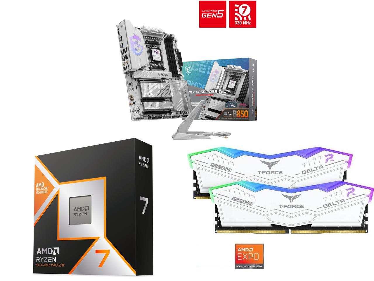 The MPG B850 EDGE TI WIFI motherboard supports AMD Ryzen 9000 / 8000 / 7000 Series processors.