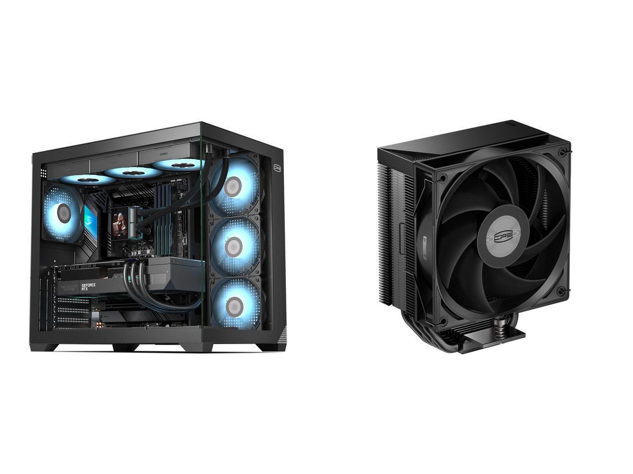 PCCOOLER CPS C3 T700 PC Case, Dual-Chamber Mid-Tower ATX Case, High-Airflow Computer Case, BTF Motherboard Supports, Sturdy Tempered Glass Front & Side Panels, Black (Fans Not Included) and 1 x PCCOOLER CPS RT500 TC CPU Air Cooler, 5 Direct Contact Heat Pipes, 245W TDP, 152mm Tall, 120mm PWM Slient Fan, for Intel LGA1851/1700/1200/115X & AMD AM5/AM4, Black
