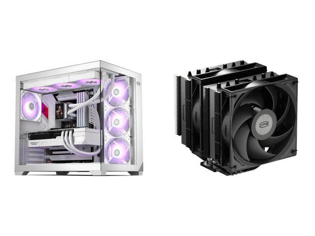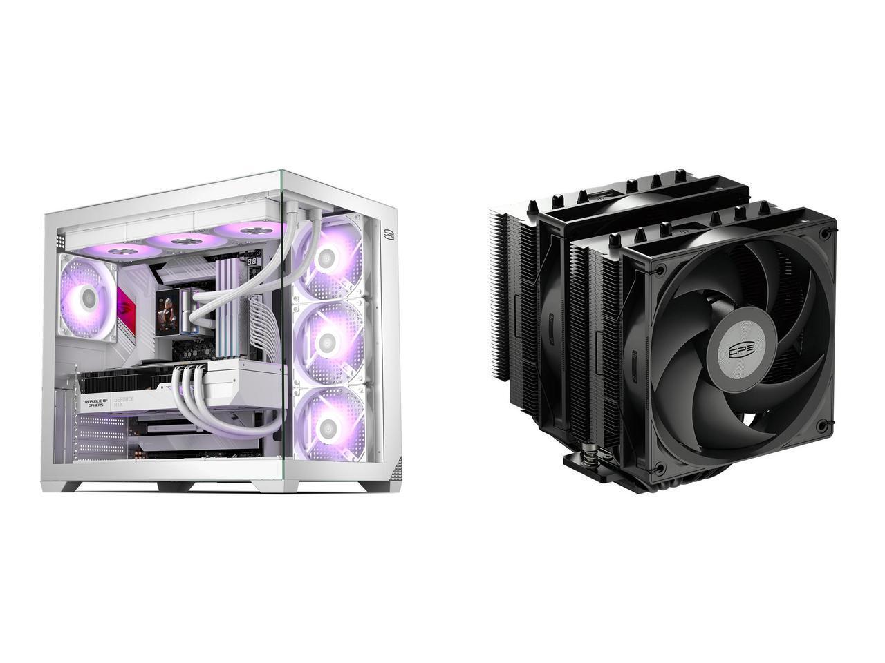 PCCOOLER CPS C3 T700 PC Case, Dual-Chamber Mid-Tower ATX Case, High-Airflow Computer Case, BTF Motherboard Supports, Sturdy Tempered Glass Front & Side Panels, White (Fans Not Included) and 1 x PCCOOLER CPS RT620Pro Dual Tower CPU Air Cooler, 6 Heat Pipes, 265W TDP, 153mm Tall, 120mm PWM Slient Fans, Tower Reinforced Structure, for Intel LGA1851/1700/1200/115X & AMD AM5/AM4, Black