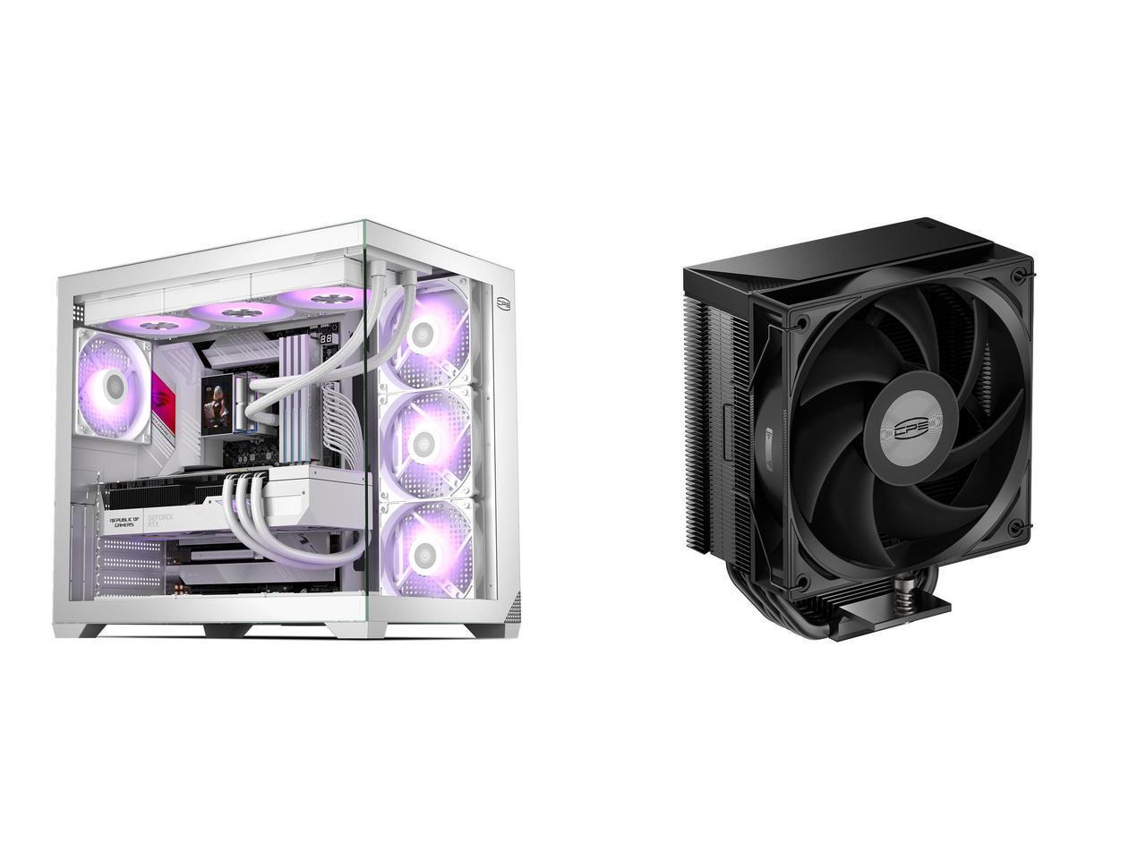 PCCOOLER CPS C3 T700 PC Case, Dual-Chamber Mid-Tower ATX Case, High-Airflow Computer Case, BTF Motherboard Supports, Sturdy Tempered Glass Front & Side Panels, White (Fans Not Included) and 1 x PCCOOLER CPS RT500 TC CPU Air Cooler, 5 Direct Contact Heat Pipes, 245W TDP, 152mm Tall, 120mm PWM Slient Fan, for Intel LGA1851/1700/1200/115X & AMD AM5/AM4, Black
