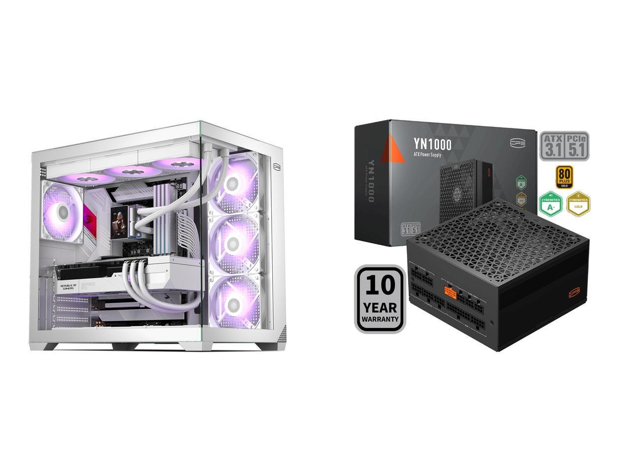 PCCOOLER CPS C3 T700 PC Case, Dual-Chamber Mid-Tower ATX Case, High-Airflow Computer Case, BTF Motherboard Supports, Sturdy Tempered Glass Front & Side Panels, White (Fans Not Included) and 1 x PCCOOLER CPS YN1000 Fully Modular Power Supply, 80 PLUS Gold 1000W PSU, 12V-2x6 Cable, ATX 3.1 & PCIe 5.1 Ready, 105°C Rated Japanese Capacitors, ECO Mode, 135mm FDB Fan, 10 Years Warranty