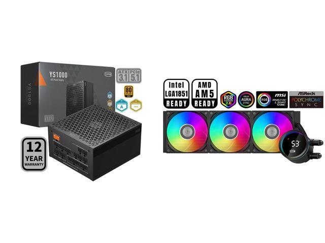 PCCOOLER CPS YS1000 Fully Modular Power Supply, 80 PLUS Gold 1000W PSU, 12V-2x6 Cable, ATX 3.1 & PCIe 5.1 Ready, 105°C Rated Japanese Capacitors, ECO Mode, 135mm FDB Fan, 12 Years Warranty and 1 x PCCOOLER CPS DA360 Pro ARGB Digital AIO CPU Liquid Cooler, 360mm Radiator, 300W TDP, 270° Rotatable Digital Display, Infinity Halo ARGB Effect, for Intel LGA 1851/1700/1200/115X & AMD AM5/AM4, Black