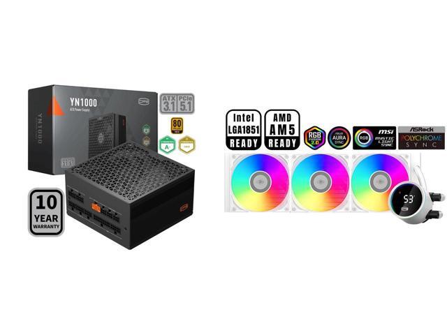 PCCOOLER CPS YN1000 Fully Modular Power Supply, 80 PLUS Gold 1000W PSU, 12V-2x6 Cable, ATX 3.1 & PCIe 5.1 Ready, 105°C Rated Japanese Capacitors, ECO Mode, 135mm FDB Fan, 10 Years Warranty and 1 x PCCOOLER CPS DA360 Pro ARGB Digital AIO CPU Liquid Cooler, 360mm Radiator, 300W TDP, 270° Rotatable Digital Display, Infinity Halo ARGB Effect, for Intel LGA 1851/1700/1200/115X & AMD AM5/AM4, White