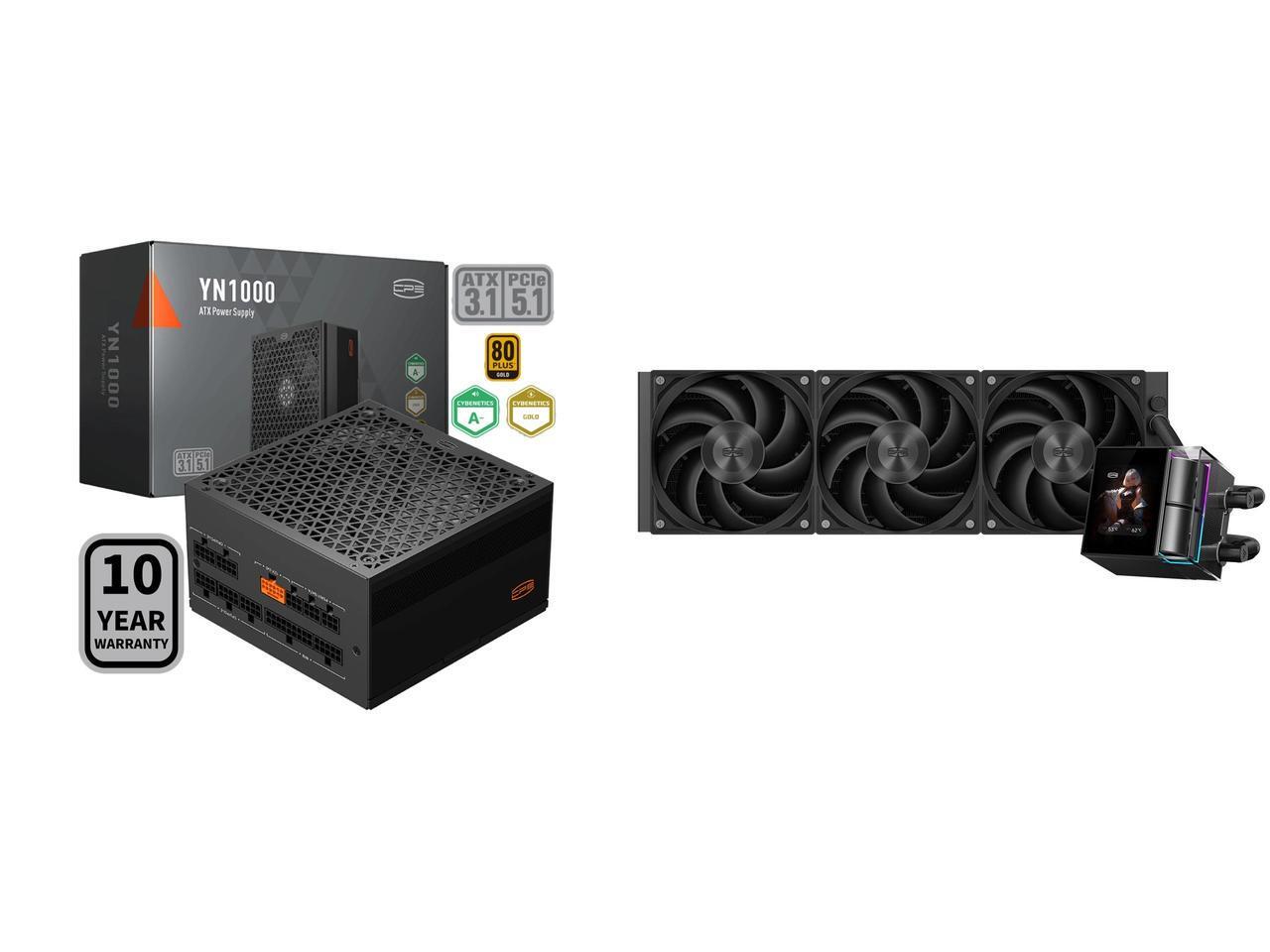 PCCOOLER CPS YN1000 Fully Modular Power Supply, 80 PLUS Gold 1000W PSU, 12V-2x6 Cable, ATX 3.1 & PCIe 5.1 Ready, 105°C Rated Japanese Capacitors, ECO Mode, 135mm FDB Fan, 10 Years Warranty and 1 x PCCOOLER CPS DS360 Display AIO CPU Liquid Cooler, 360mm Radiator, 315W TDP, ARGB LEDs & Customizable 2.4" IPS LCD Display, Ceramic Bearing, for Intel LGA 1851/1700/1200/115X & AMD AM5/AM4, Black