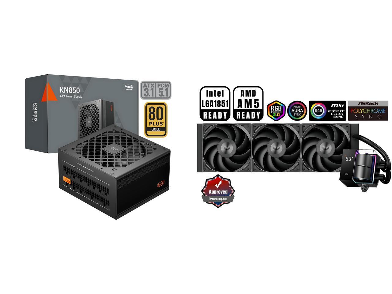 PCCOOLER CPS KN850 Fully Modular Power Supply, 80 PLUS Gold 850W PSU, Native 12V-2x6 Connector, ATX 3.1 & PCIe 5.1 Ready, Dual CPU Power Cables, 105°C Rated Japanese Capacitors, P3-KN850-G1F and 1 x PCCOOLER CPS DS360 AIO CPU Liquid Cooler, 360mm Radiator, 310W TDP, Dual Chamber Pump, ARGB LEDs & Digital Display, Aluminum Pump Cover, for Intel LGA 1851/1700/1200/115X & AMD AM5/AM4, Black