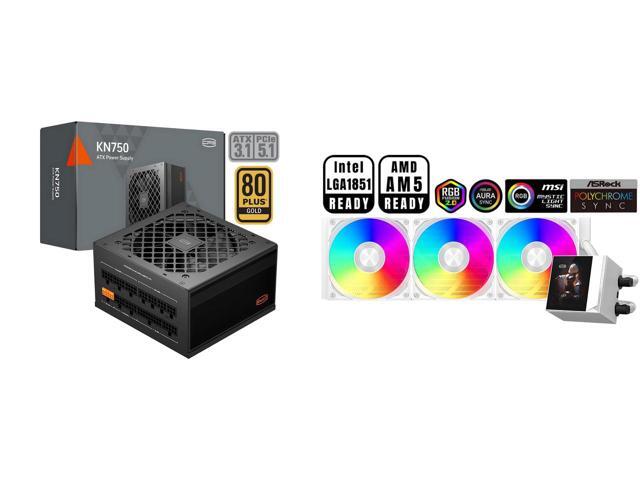 PCCOOLER CPS KN750 Fully Modular Power Supply, 80 PLUS Gold 750W PSU, Native 12V-2x6 Connector, ATX 3.1 & PCIe 5.1 Ready, Dual CPU Power Cables, 105°C Rated Japanese Capacitors, P3-KN750-G1F and 1 x PCCOOLER CPS DC360 Pro ARGB Display AIO CPU Liquid Cooler, 360mm Radiator, 310W TDP, Customizable 2.4" IPS LCD Display, Ceramic Bearing, for Intel LGA 1851/1700/1200/115X & AMD AM5/AM4, White