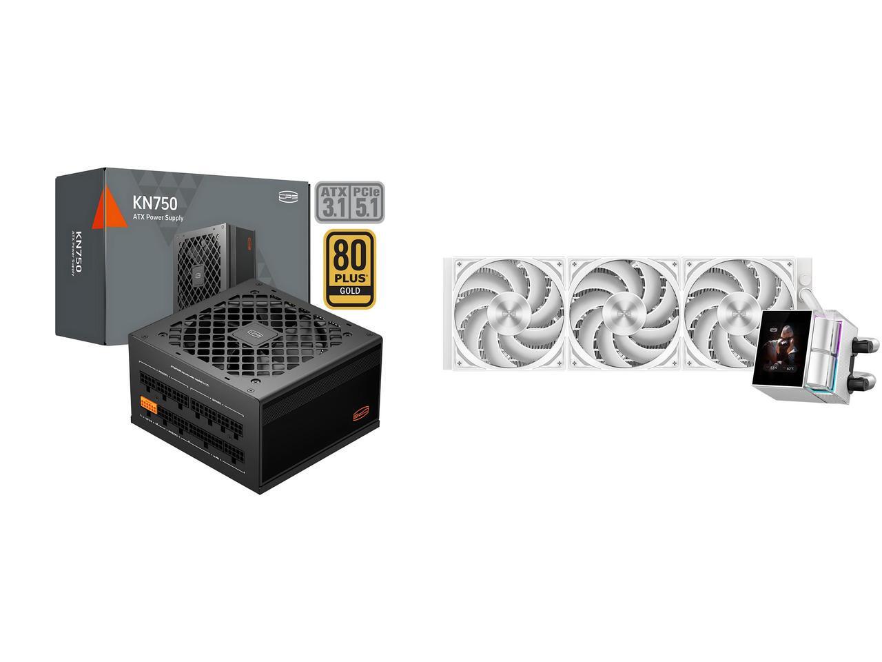 PCCOOLER CPS KN750 Fully Modular Power Supply, 80 PLUS Gold 750W PSU, Native 12V-2x6 Connector, ATX 3.1 & PCIe 5.1 Ready, Dual CPU Power Cables, 105°C Rated Japanese Capacitors, P3-KN750-G1F and 1 x PCCOOLER CPS DS360 Display AIO CPU Liquid Cooler, 360mm Radiator, 315W TDP, ARGB LEDs & Customizable 2.4" IPS LCD Display, Ceramic Bearing, for Intel LGA 1851/1700/1200/115X & AMD AM5/AM4, White