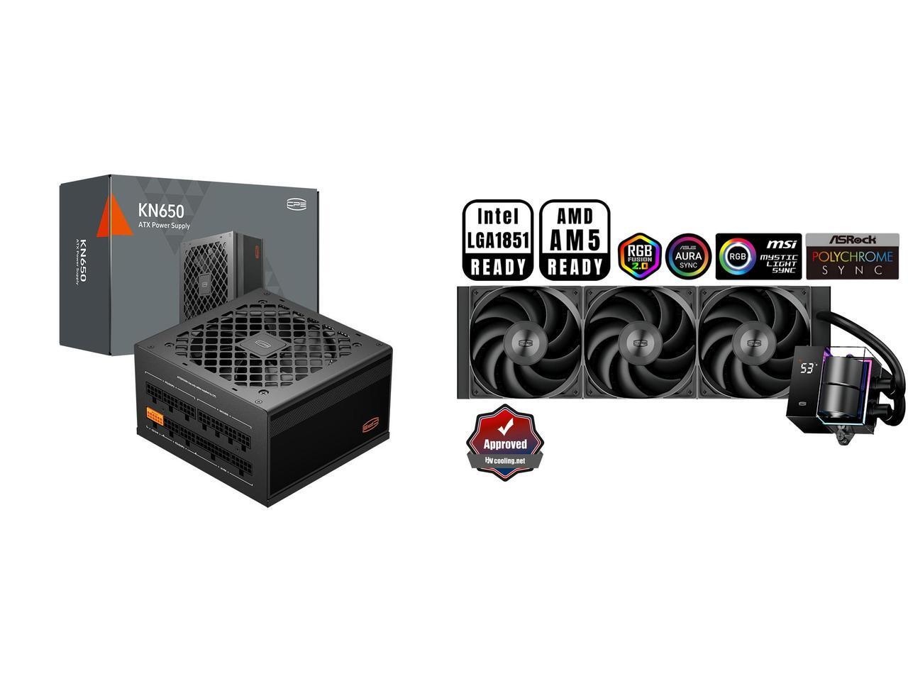 PCCOOLER CPS KN650 Fully Modular Power Supply, 80 PLUS Gold 650W PSU, Native 12V-2x6 Connector, ATX 3.1 & PCIe 5.1 Ready, Dual CPU Power Cables, 105°C Rated Japanese Capacitors, P3-KN650-G1F and 1 x PCCOOLER CPS DS360 AIO CPU Liquid Cooler, 360mm Radiator, 310W TDP, Dual Chamber Pump, ARGB LEDs & Digital Display, Aluminum Pump Cover, for Intel LGA 1851/1700/1200/115X & AMD AM5/AM4, Black