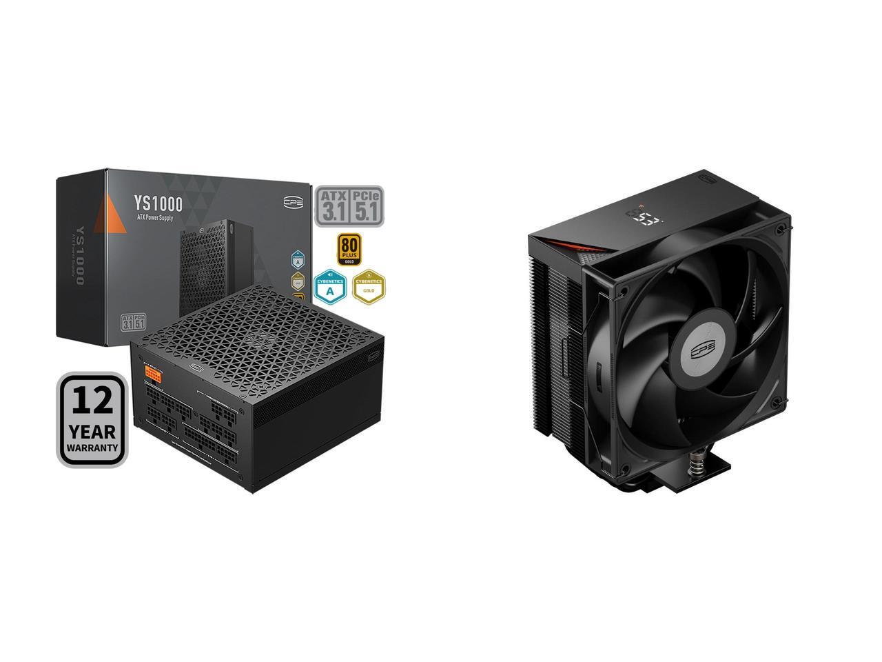PCCOOLER CPS YS1000 Fully Modular Power Supply, 80 PLUS Gold 1000W PSU, 12V-2x6 Cable, ATX 3.1 & PCIe 5.1 Ready, 105°C Rated Japanese Capacitors, ECO Mode, 135mm FDB Fan, 12 Years Warranty and 1 x PCCOOLER CPS RT500 Digital CPU Air Cooler, 5 Direct Contact Heat Pipes, 245W TDP, Digital Display Top Cover, 152mm Tall, 120mm PWM Slient Fan, for Intel LGA1851/1700/1200/115X & AMD AM5/AM4, Black