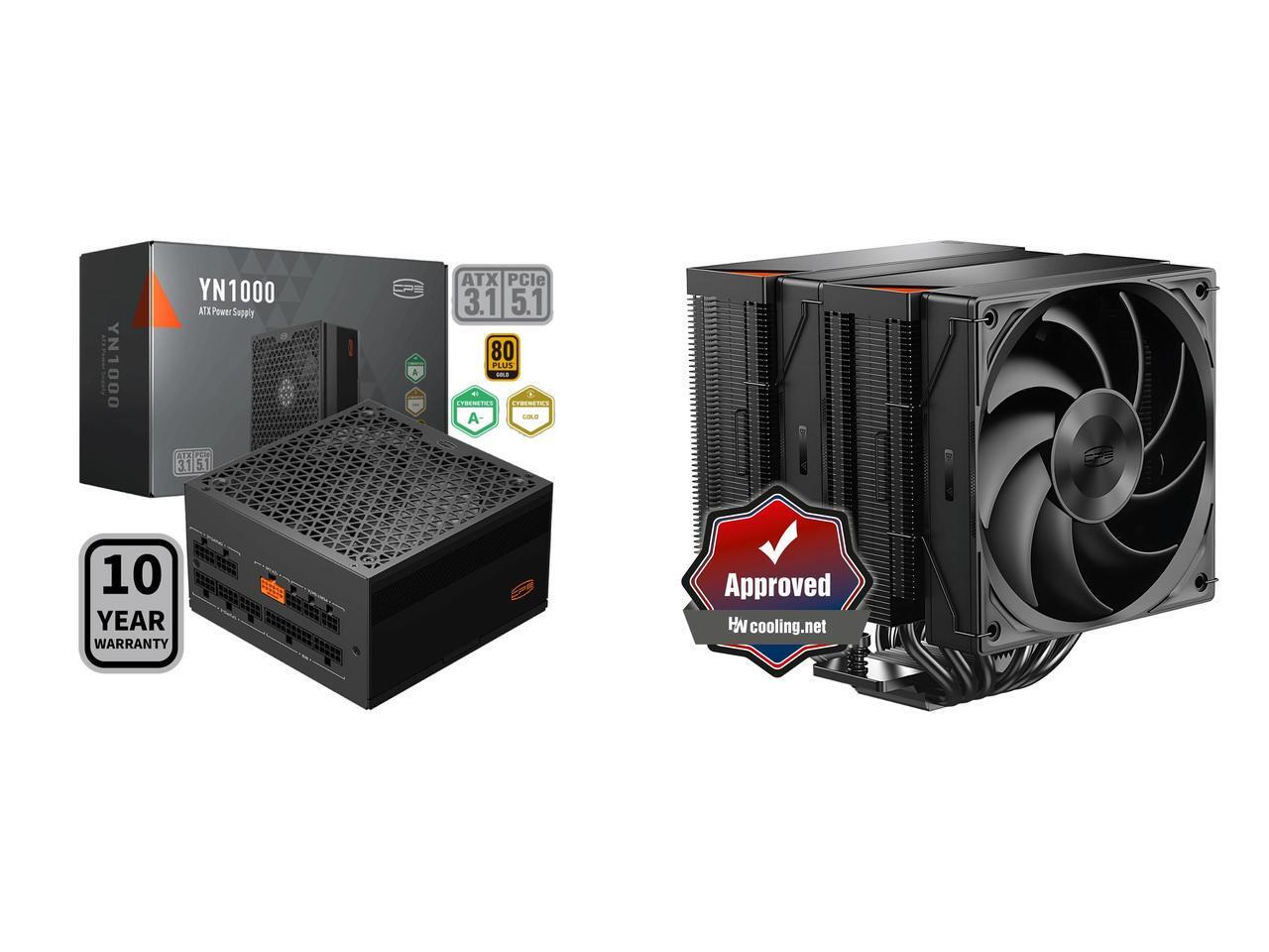 PCCOOLER CPS YN1000 Fully Modular Power Supply, 80 PLUS Gold 1000W PSU, 12V-2x6 Cable, ATX 3.1 & PCIe 5.1 Ready, 105°C Rated Japanese Capacitors, ECO Mode, 135mm FDB Fan, 10 Years Warranty and 1 x PCCOOLER CPS RZ620 Dual Tower CPU Air Cooler, 6 Heat Pipes, 275W TDP, Aluminum Top Cover, 157.5mm Tall, 120mm PWM Silent Fans w/ 3 Modes, for Intel LGA 1851/1700/1200/115X & AMD AM5/AM4, Black
