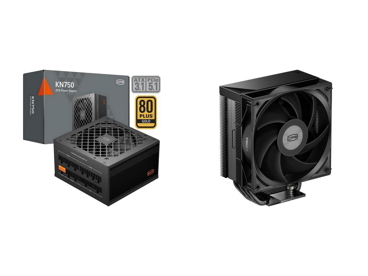 PCCOOLER CPS KN750 Fully Modular Power Supply, 80 PLUS Gold 750W PSU, Native 12V-2x6 Connector, ATX 3.1 & PCIe 5.1 Ready, Dual CPU Power Cables, 105°C Rated Japanese Capacitors, P3-KN750-G1F and 1 x PCCOOLER CPS RT500 TC CPU Air Cooler, 5 Direct Contact Heat Pipes, 245W TDP, 152mm Tall, 120mm PWM Slient Fan, for Intel LGA1851/1700/1200/115X & AMD AM5/AM4, Black
