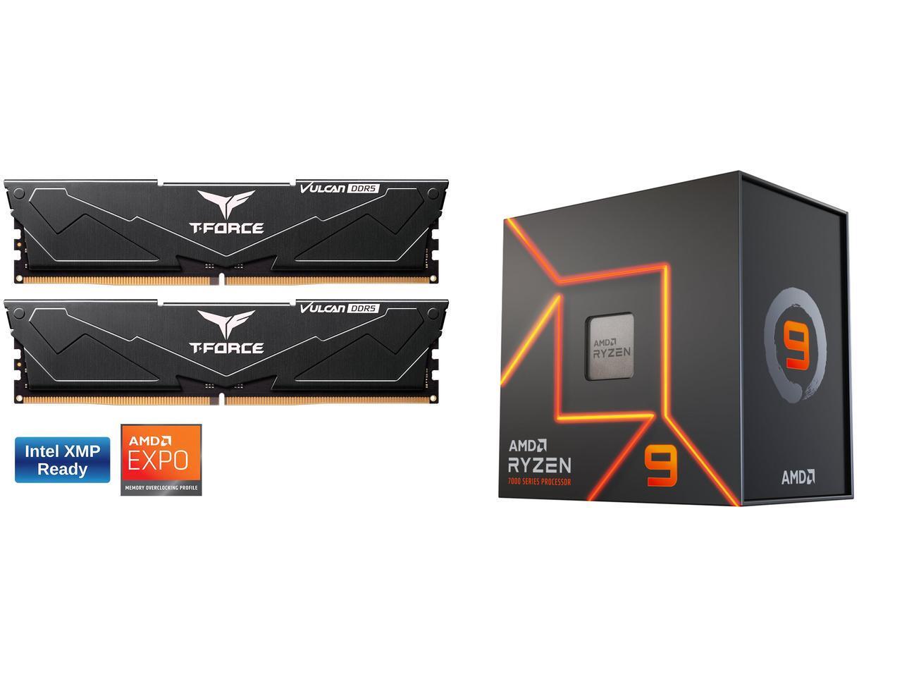 Team T-Force Vulcan 32GB (2 x 16GB) 288-Pin PC RAM DDR5 6000 (PC5 48000) Desktop Memory Model FLBD532G6000HC38ADC01 AMD Ryzen 9 7900X - Zen 4 12-Core 4.7 GHz - Socket AM5 - 170W Desktop Processor (100-100000589WOF)