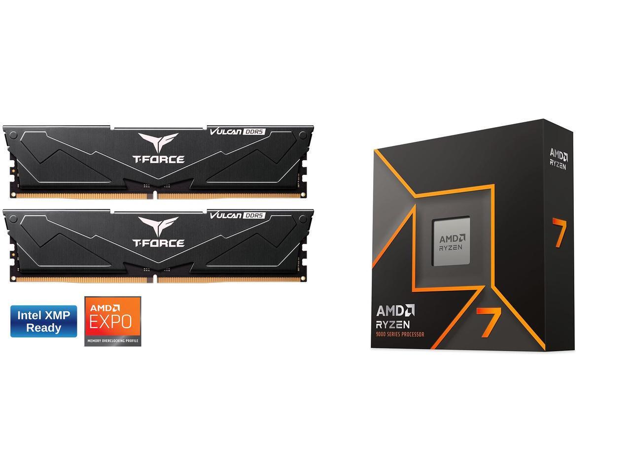 Team T-Force Vulcan 32GB (2 x 16GB) 288-Pin PC RAM DDR5 6000 (PC5 48000) Desktop Memory Model FLBD532G6000HC38ADC01 AMD Ryzen 7 9700X - Ryzen 7 9000 Series Granite Ridge (Zen 5) 8-Core 3.8 GHz - Socket AM5 65W - Radeon Graphics Processor -