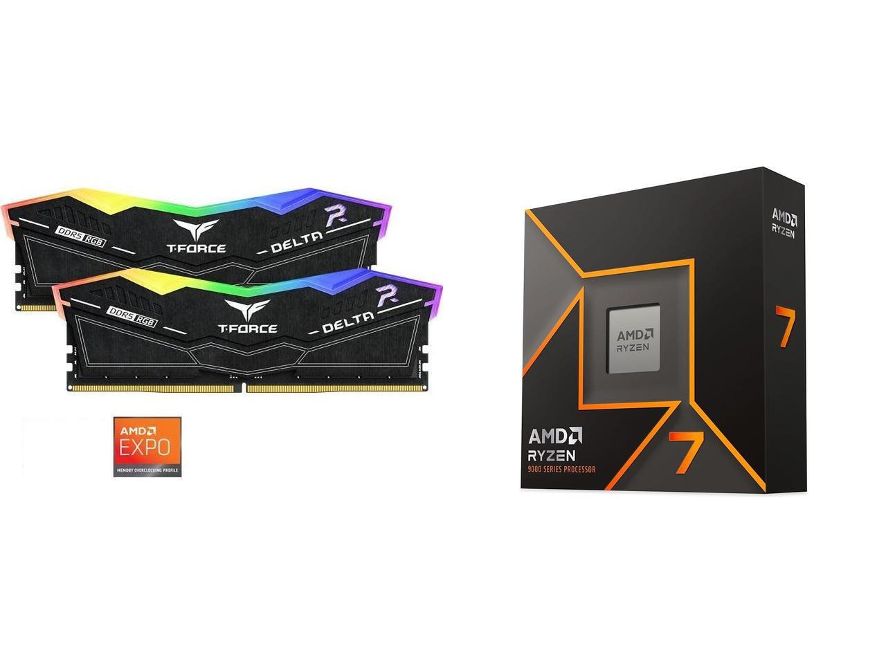 Team T-Force Delta RGB 32GB (2 x 16GB) 288-Pin PC RAM DDR5 6400 (PC5 51200) Desktop Memory Model FF3D532G6400HC32ADC01 AMD Ryzen 7 9700X - Ryzen 7 9000 Series Granite Ridge (Zen 5) 8-Core 3.8 GHz - Socket AM5 65W - Radeon Graphics Processor