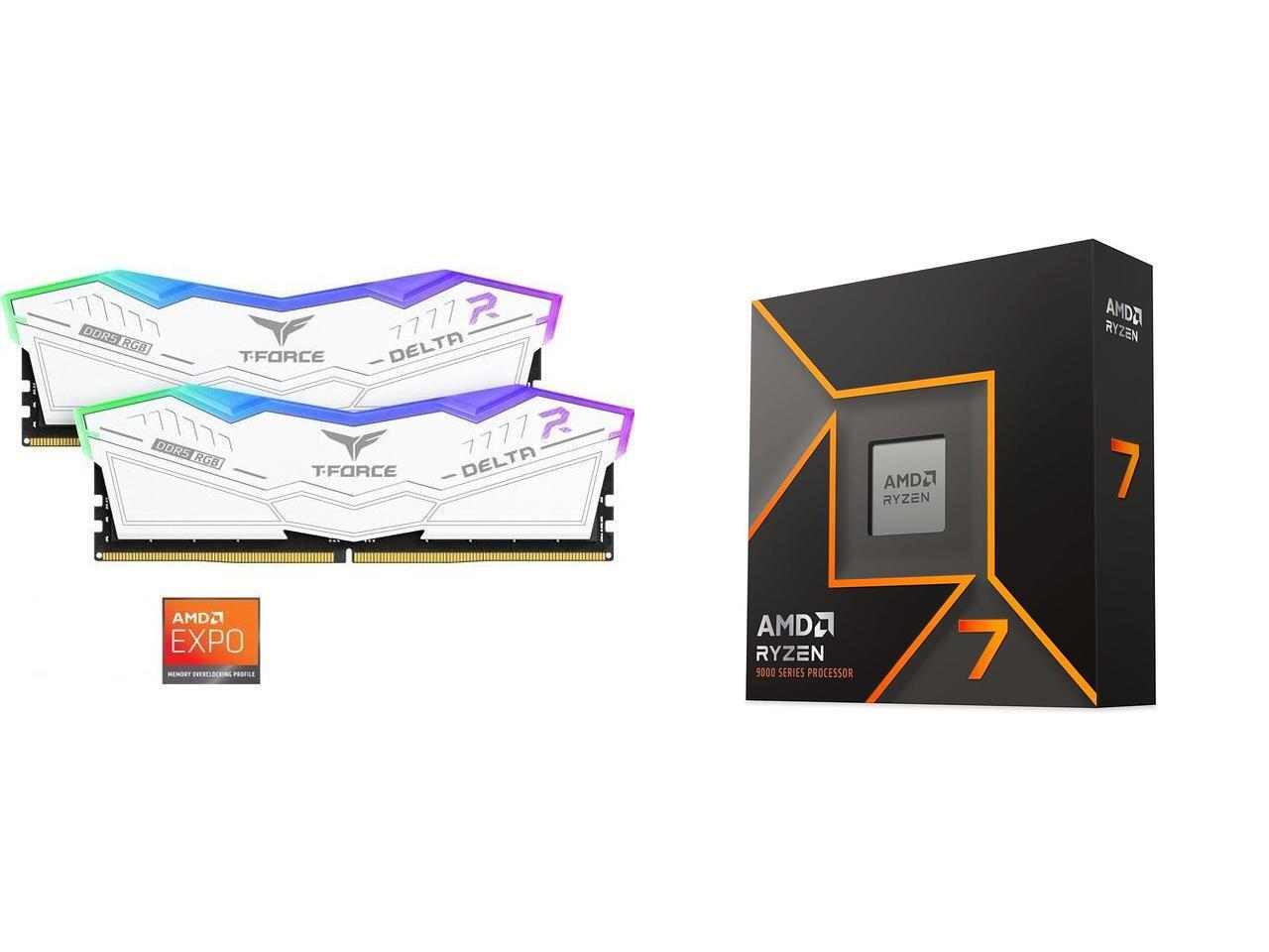 Team T-Force Delta RGB 32GB (2 x 16GB) 288-Pin PC RAM DDR5 6400 (PC5 51200) Desktop Memory Model FF4D532G6400HC32ADC01 AMD Ryzen 7 9700X - Ryzen 7 9000 Series Granite Ridge (Zen 5) 8-Core 3.8 GHz - Socket AM5 65W - Radeon Graphics Processor